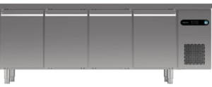 - Uitgerust met: 1 rechts- en 1 linksdraaiende deur met slot, zelfsluitende deuren en pedaaldeuropeners, 8 grijze roosters, LED-verlichting